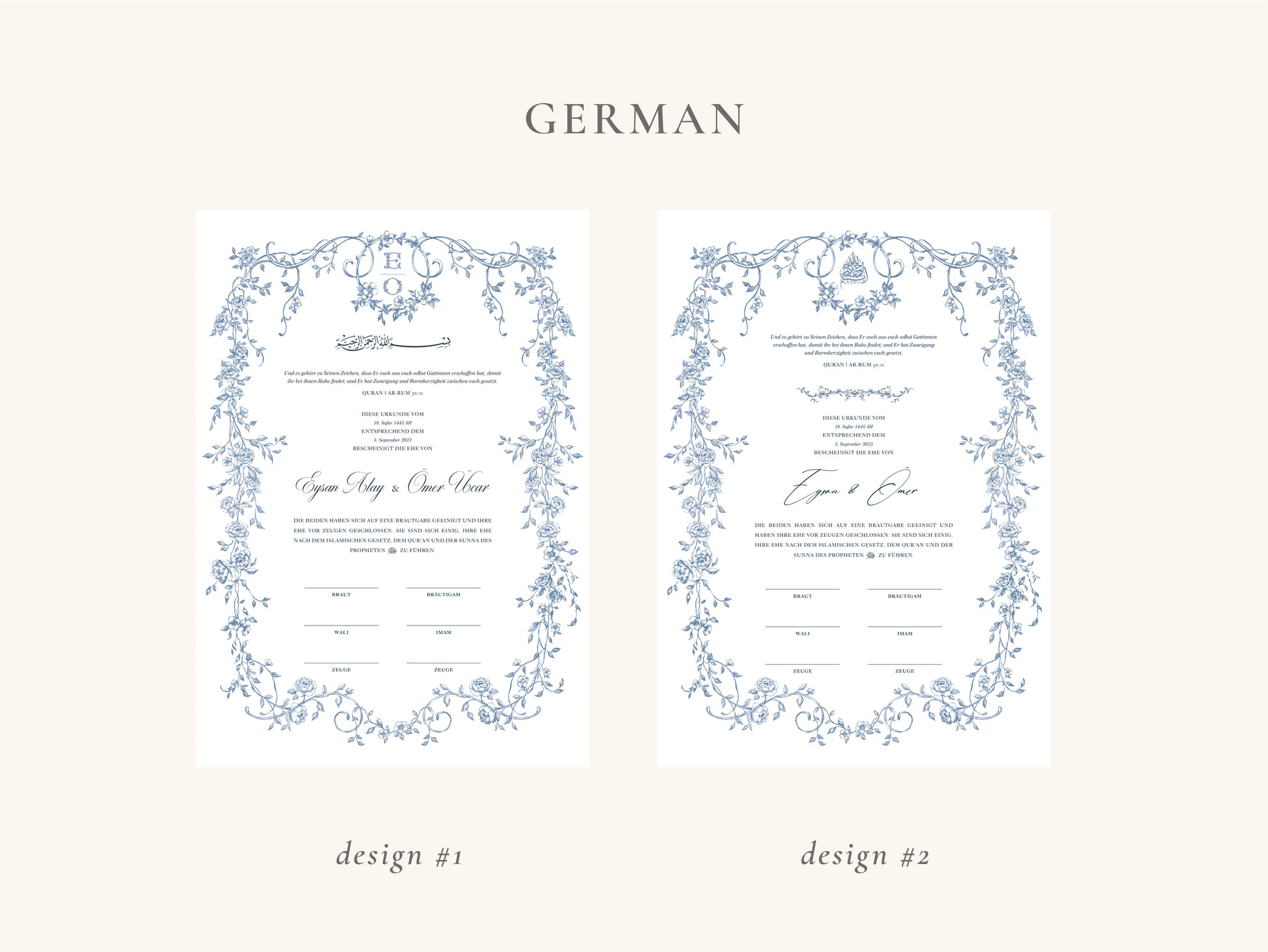 The folio is not available for A3 certificates. For DIN A4 certificates and folios, please view our collection “A4 Nikkah Certificates” on our website.