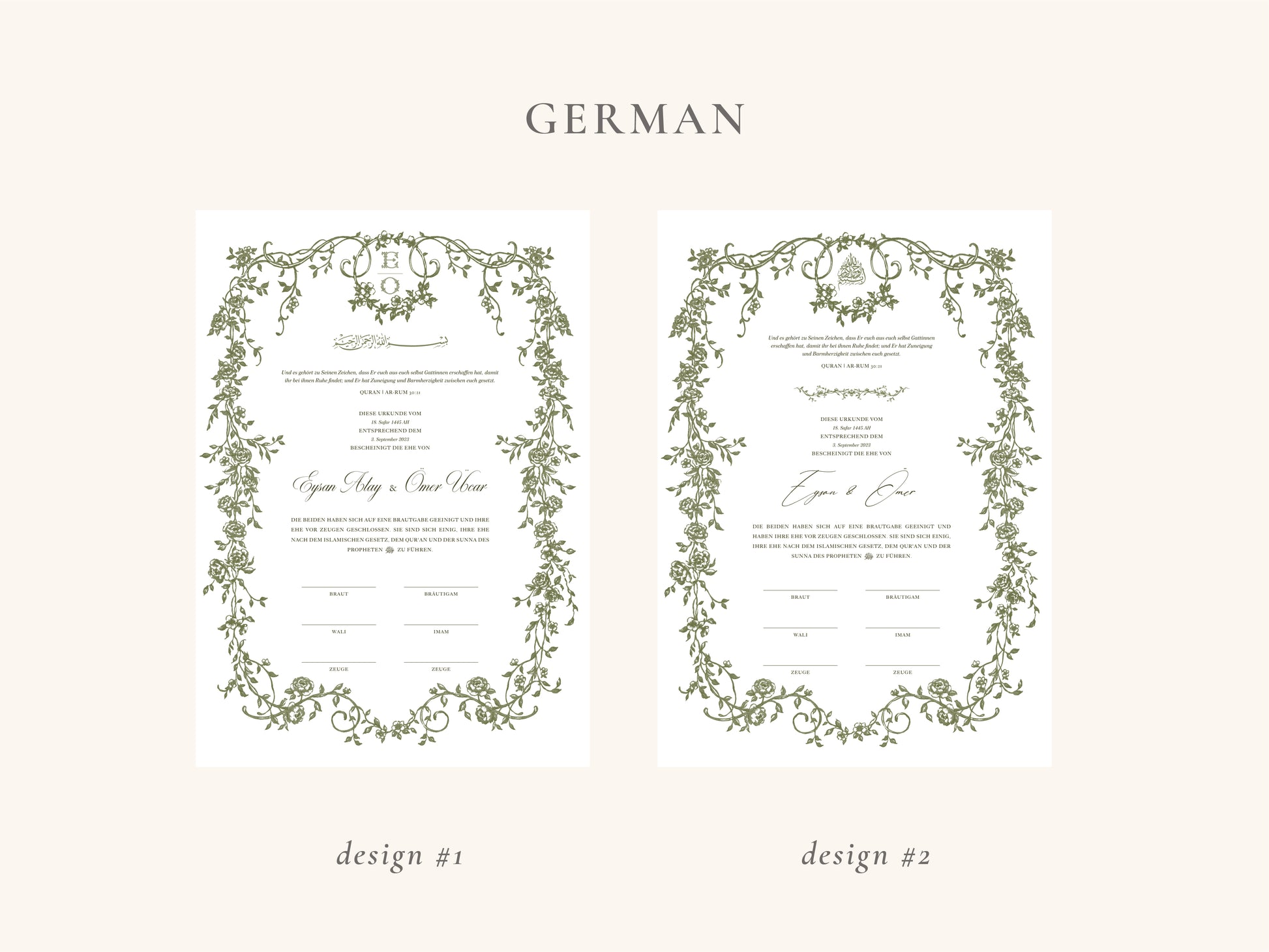 The folio is not available for A3 certificates. For DIN A4 certificates and folios, please view our collection “A4 Nikkah Certificates” on our website.