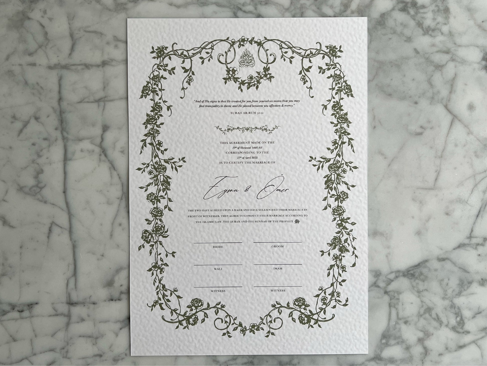Our nikkah certificates are printed on 250–300 gsm high-quality paper.