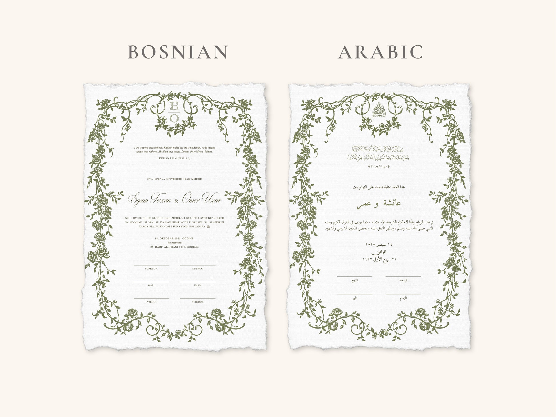 Our nikkah certificates are printed on 250–300 gsm high-quality paper.