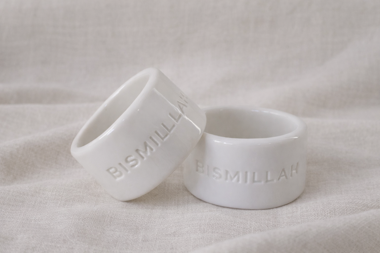 Add a meaningful and elegant touch to your table setting with these handmade ceramic napkin rings, featuring the word “Bismillah” in a subtle embossed design. Perfect for Ramadan, Eid, weddings, or special gatherings.
