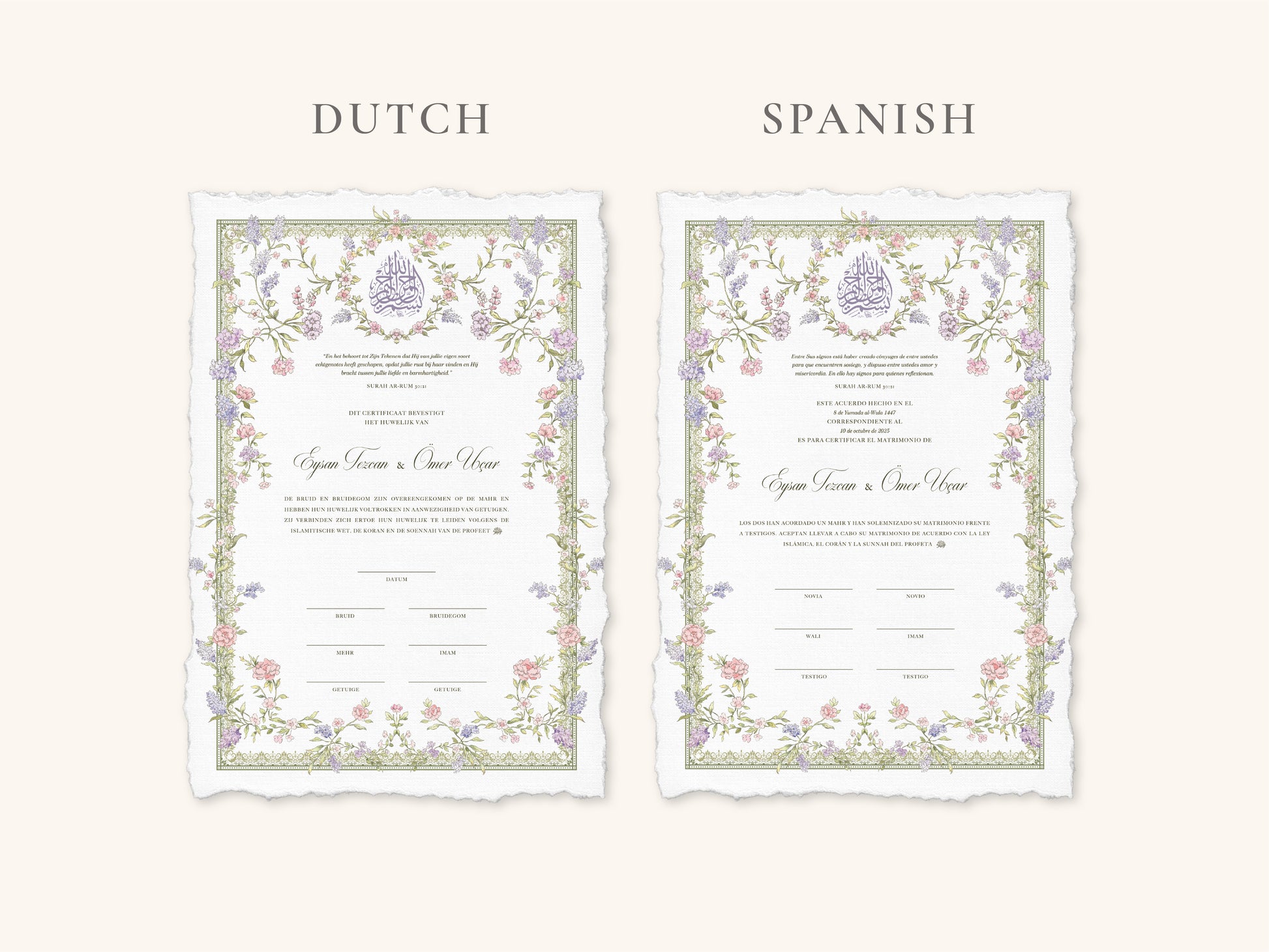 Our nikkah certificates are printed on 250–300 gsm high-quality paper.