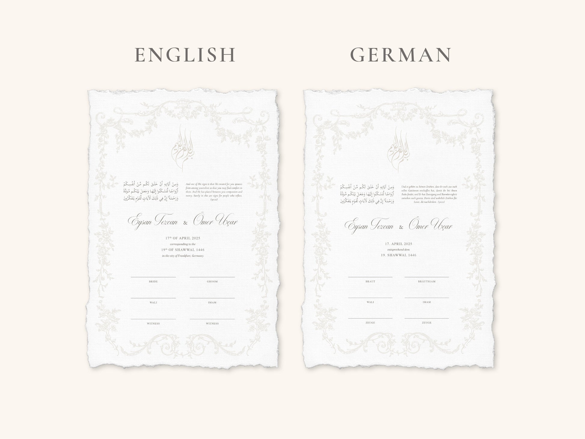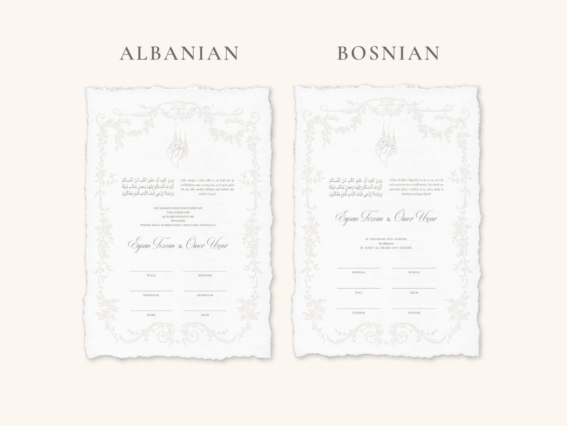 Our nikkah certificates are printed on 250–300 gsm high-quality paper.