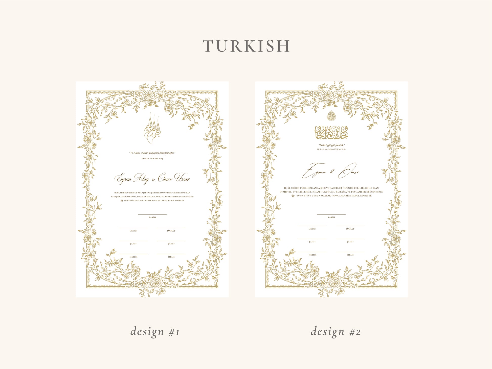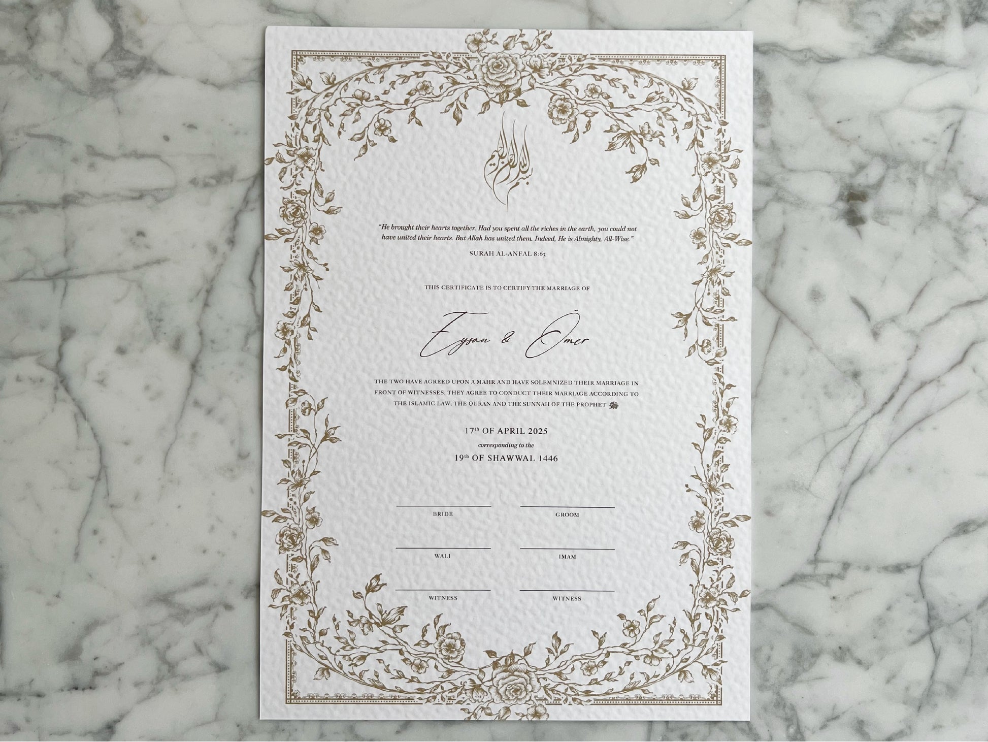 Floral Gold Nikkah Certificate (A3 Size)
