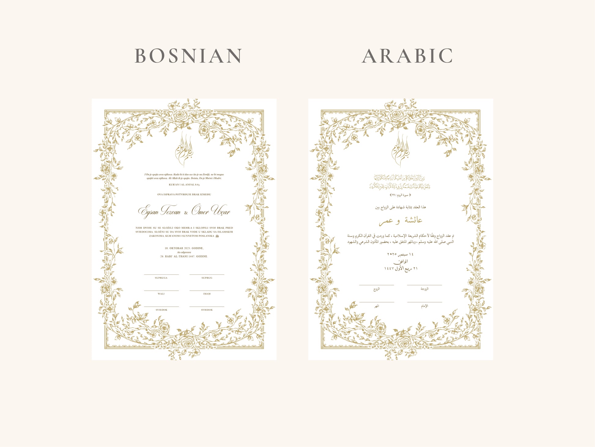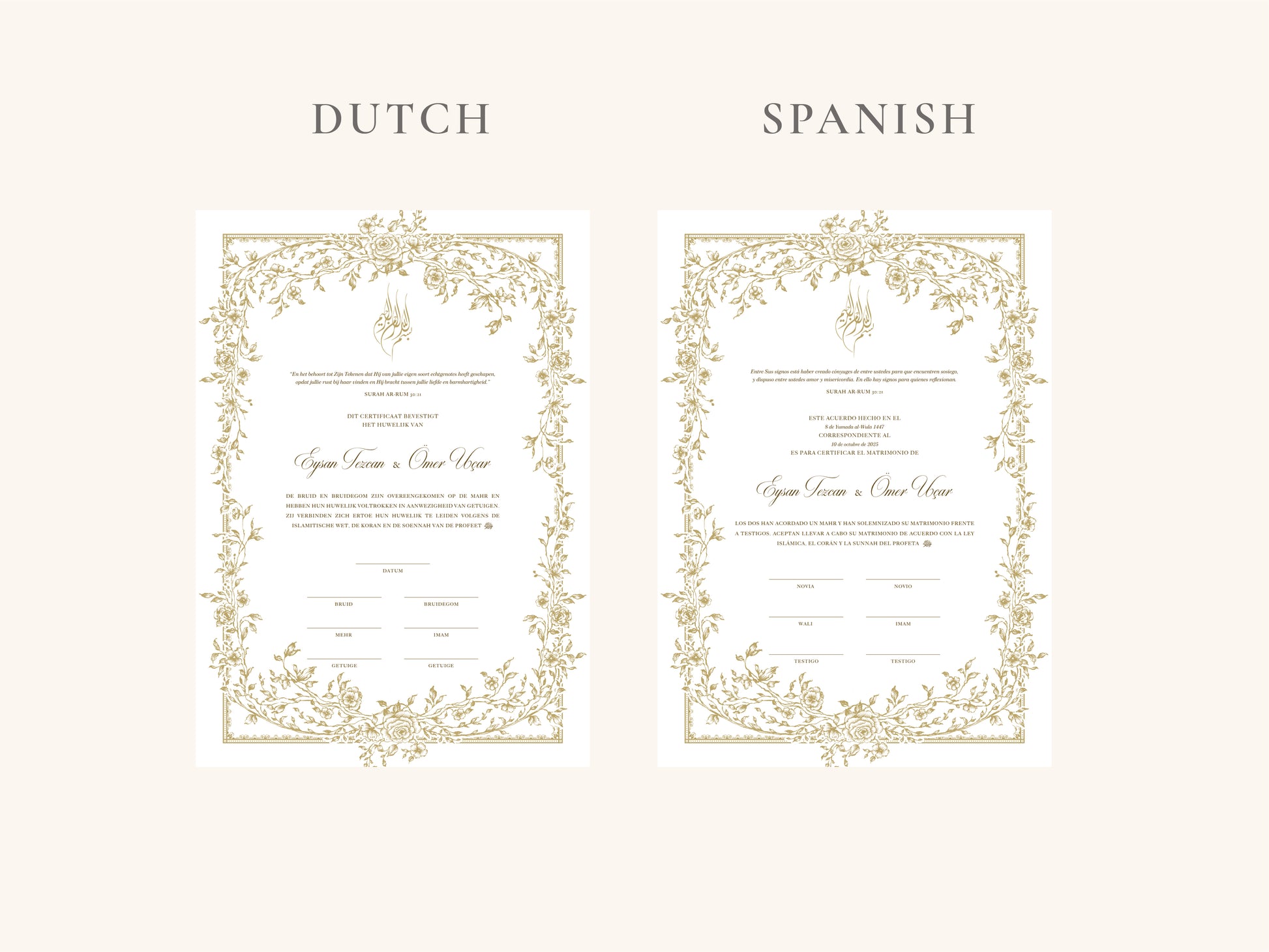 Our nikkah certificates are printed on 250–300 gsm high-quality paper.