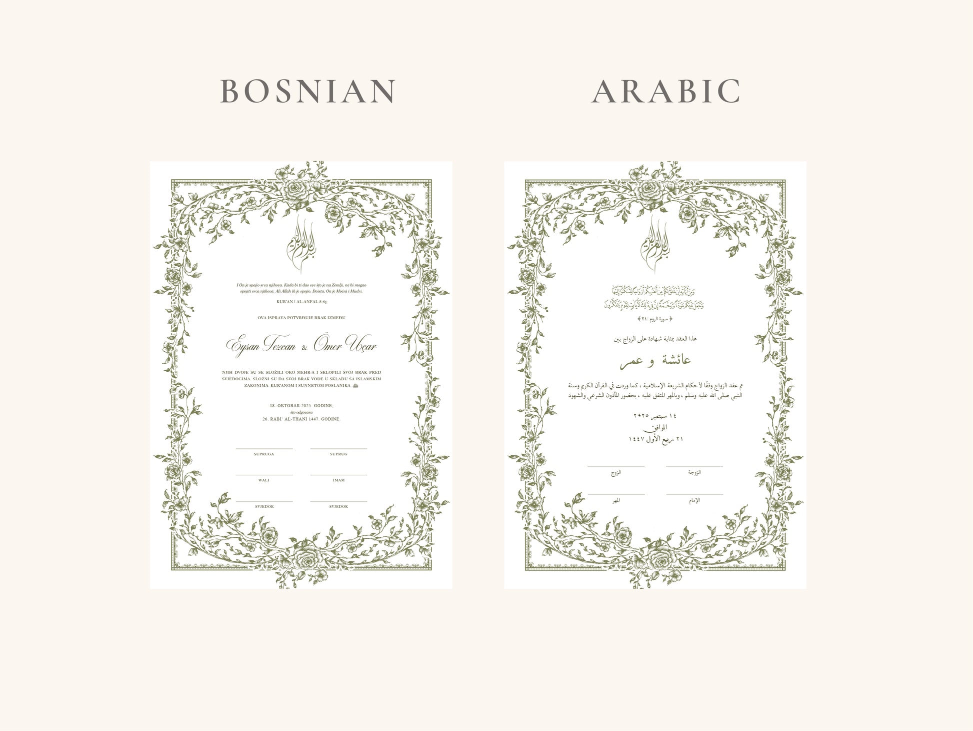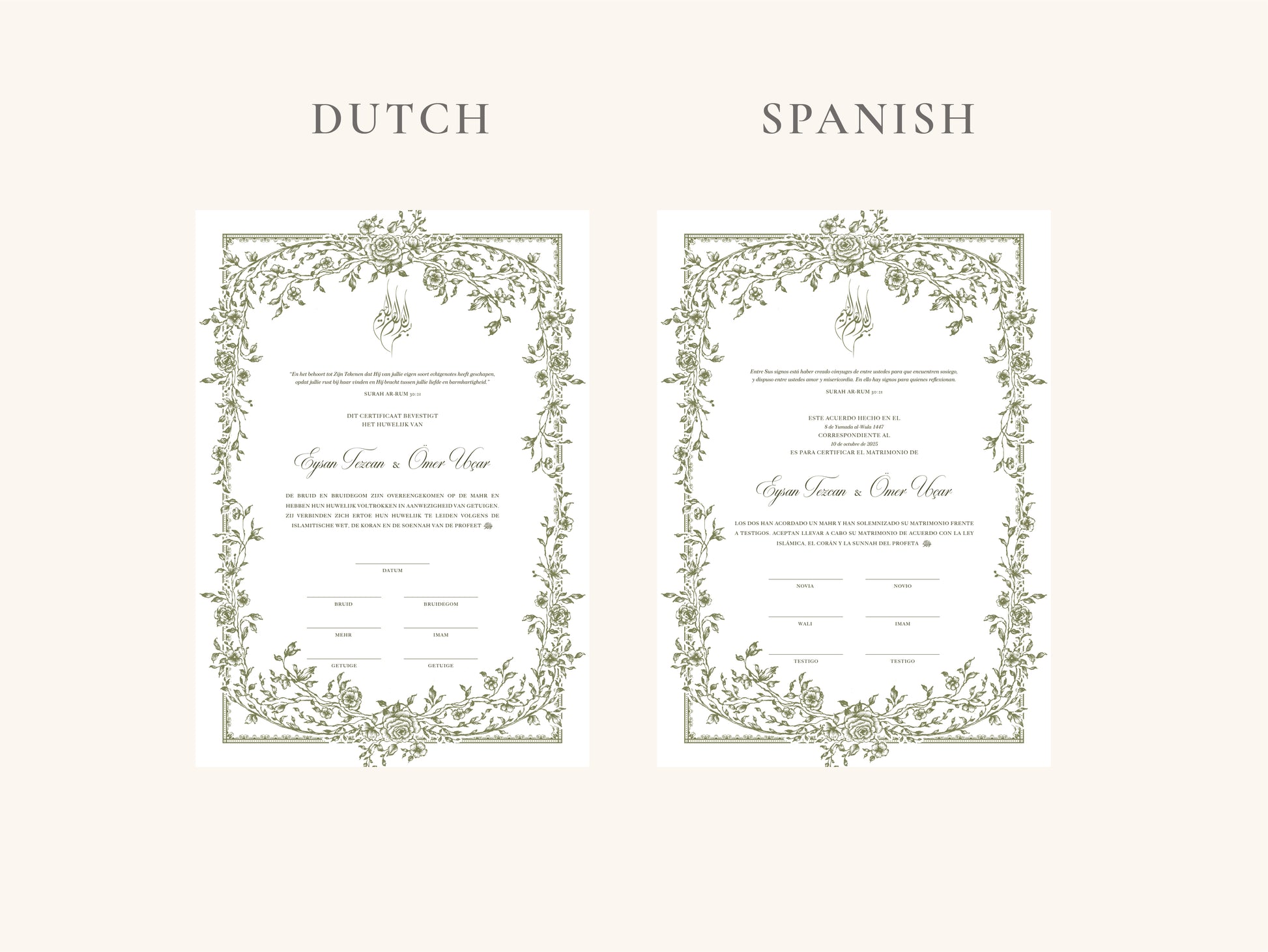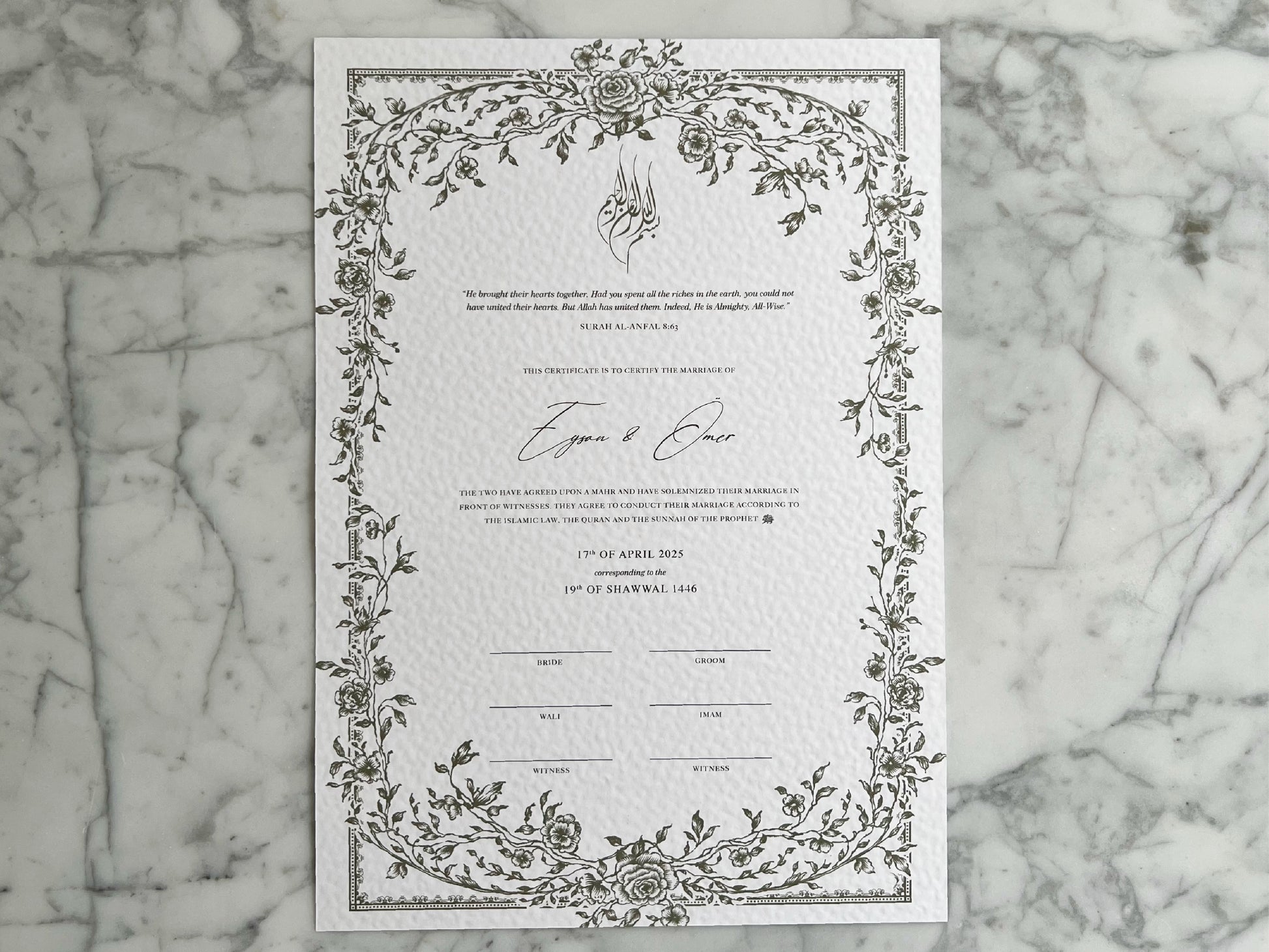 Our nikkah certificates are printed on 250–300 gsm high-quality paper.