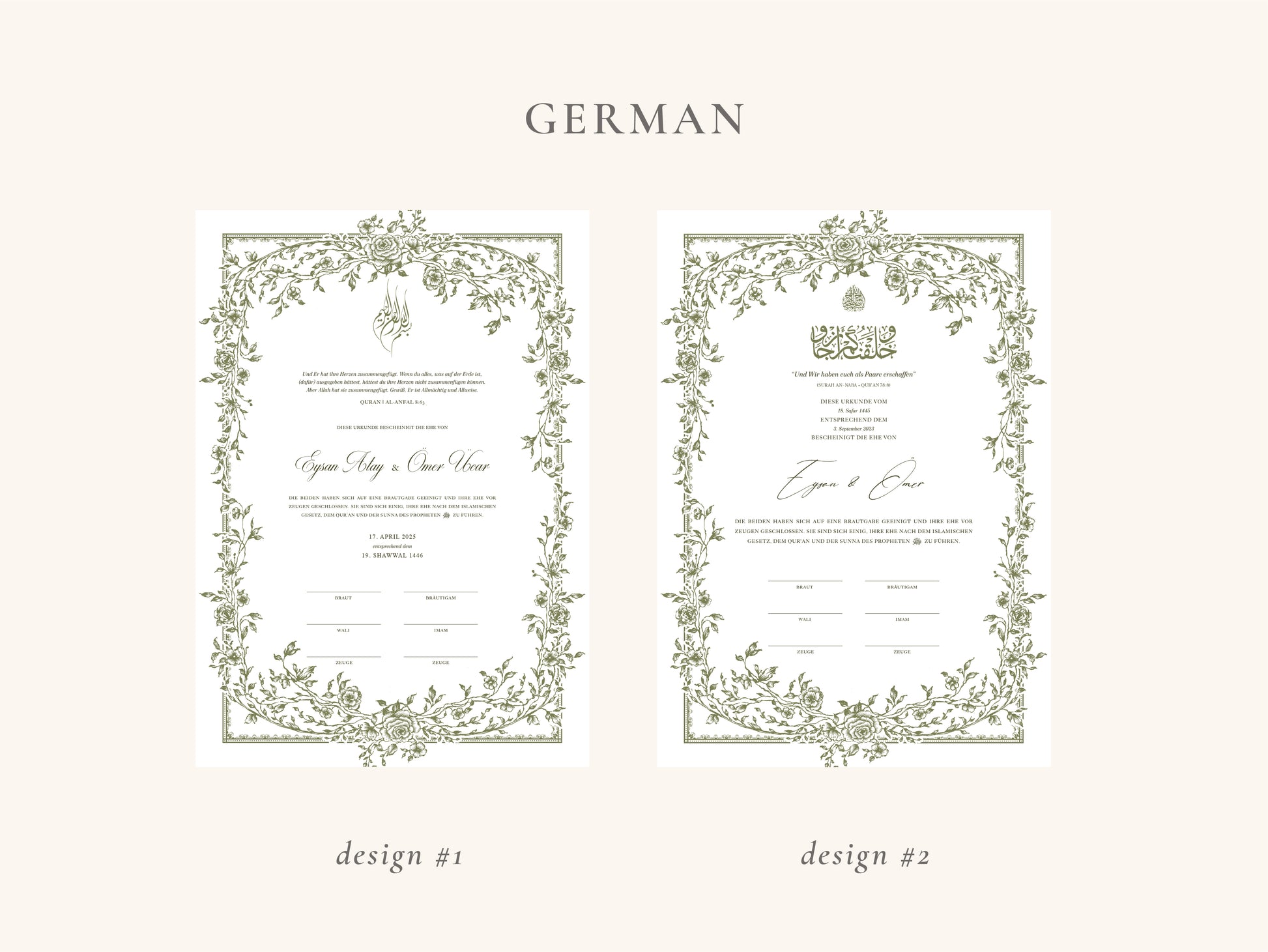The folio is not available for A3 certificates. For DIN A4 certificates and folios, please view our collection “A4 Nikkah Certificates” on our website.