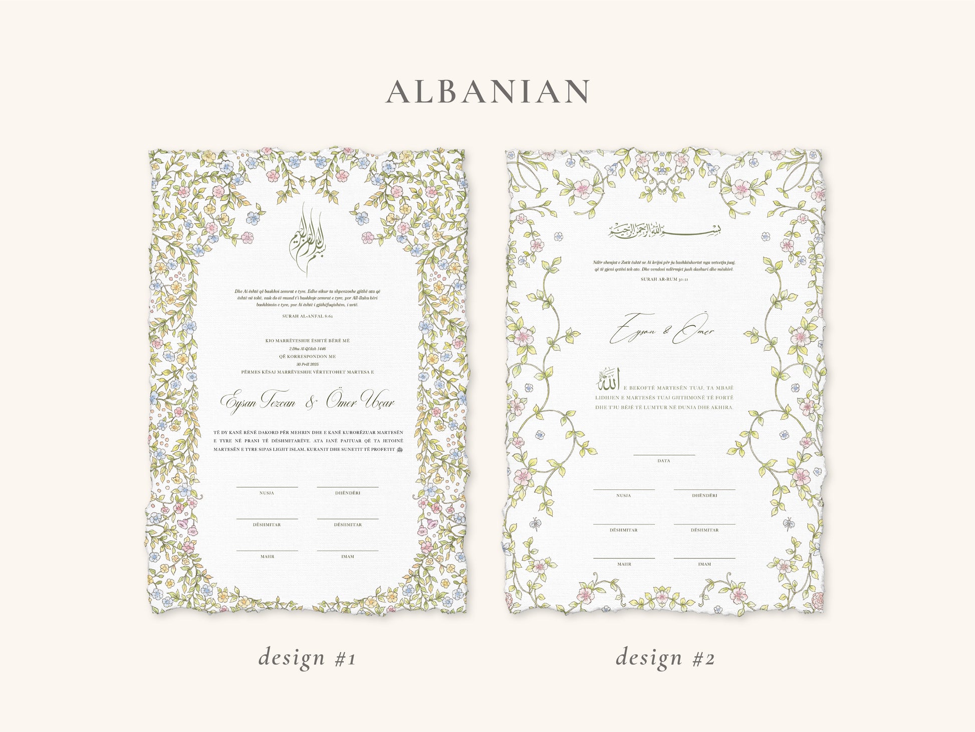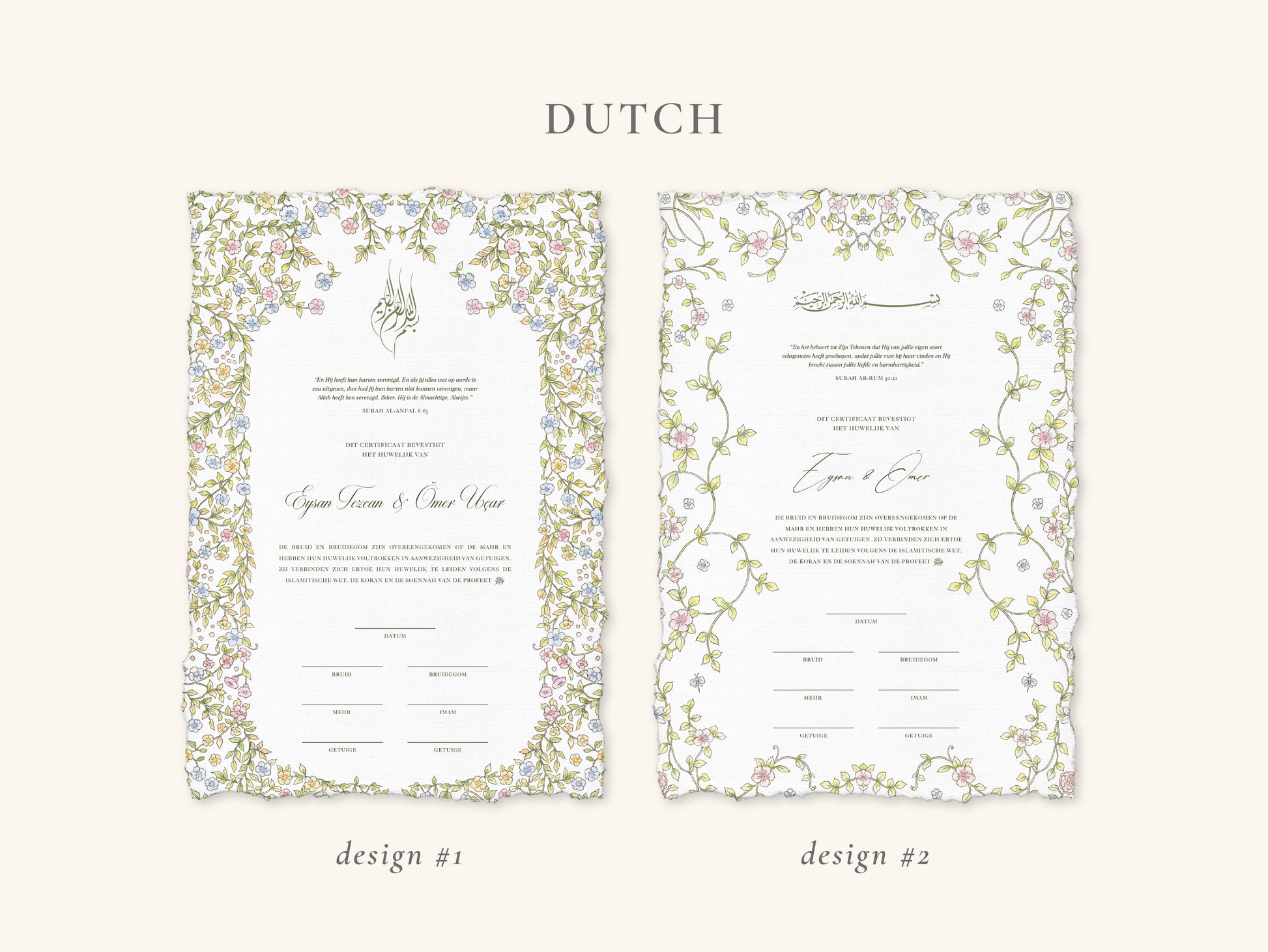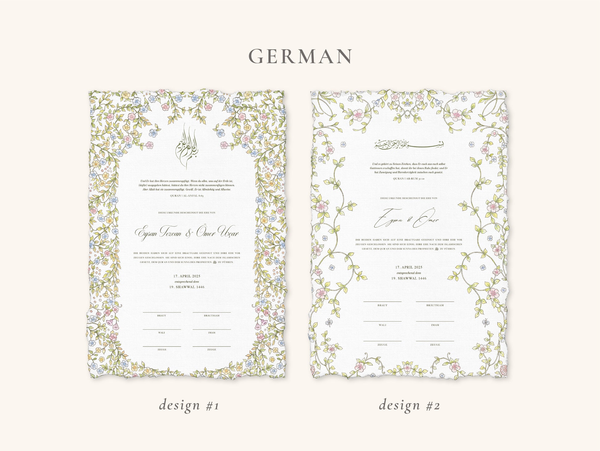 The certificate and folio are provided in DIN A4 size. For DIN A3 certificates, please view our collection “A3 Nikkah Certificates” on our website.