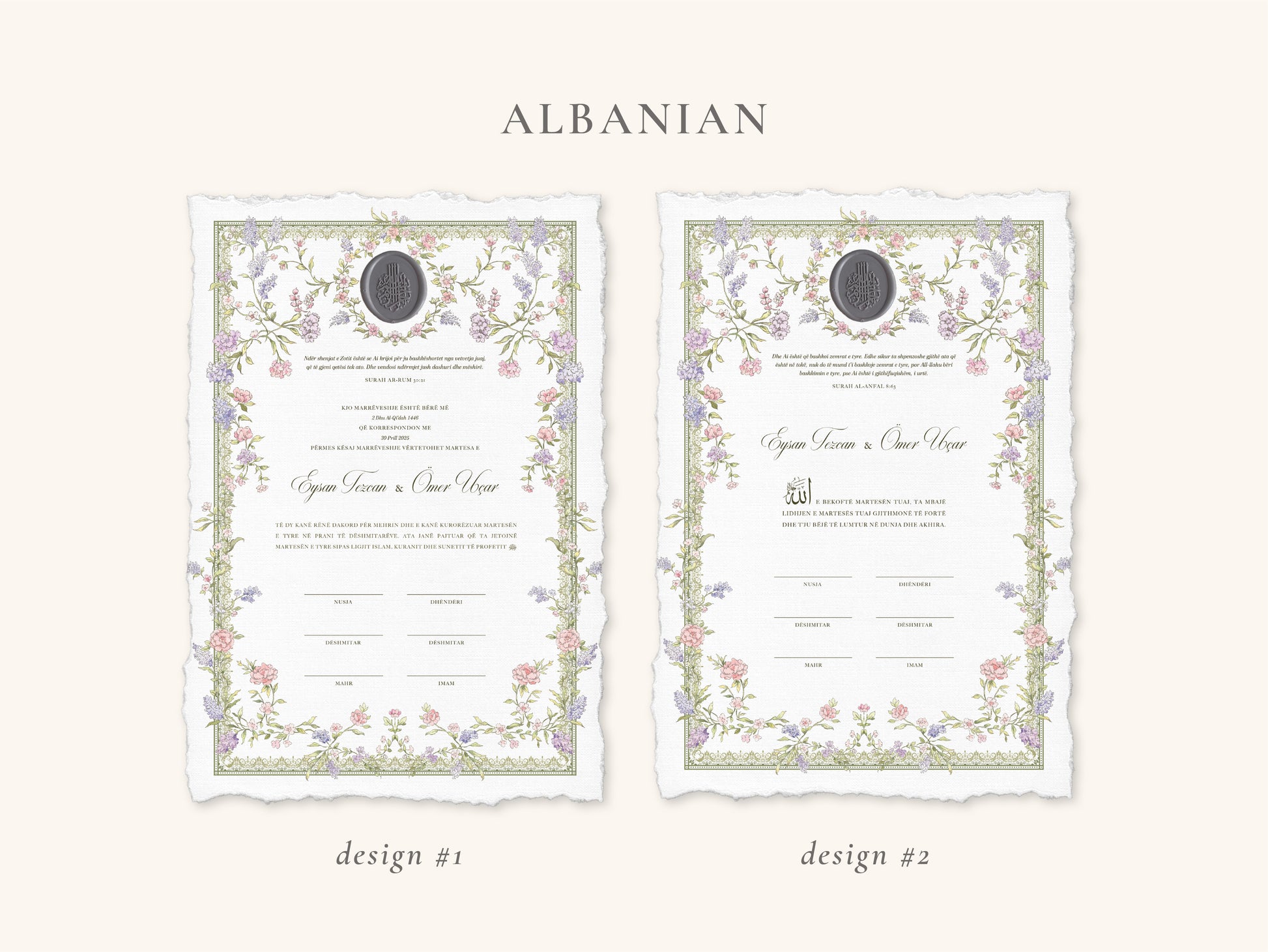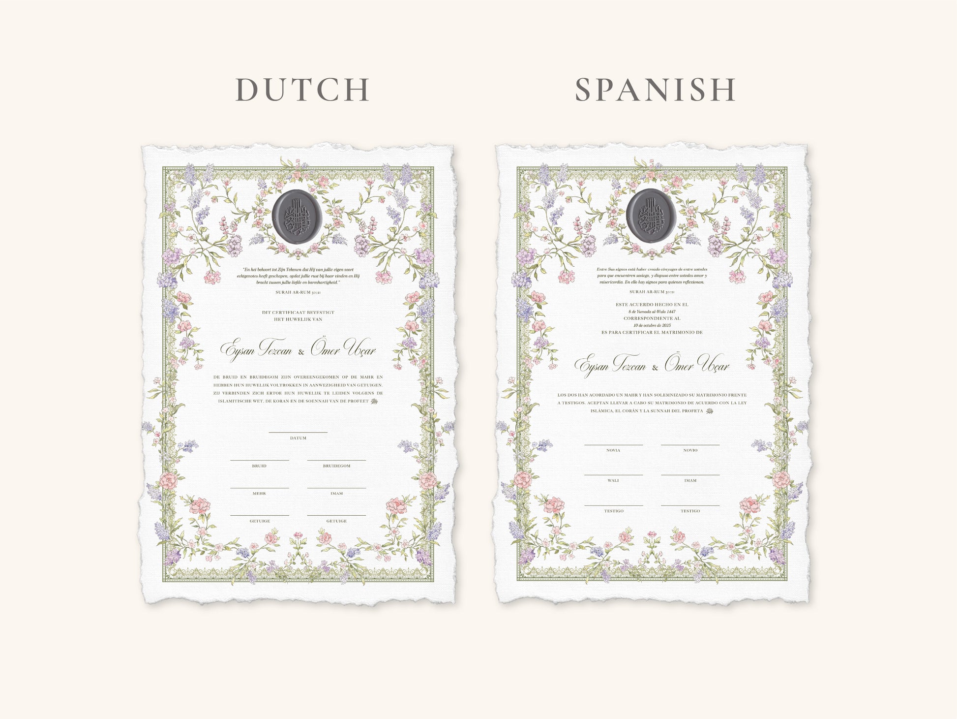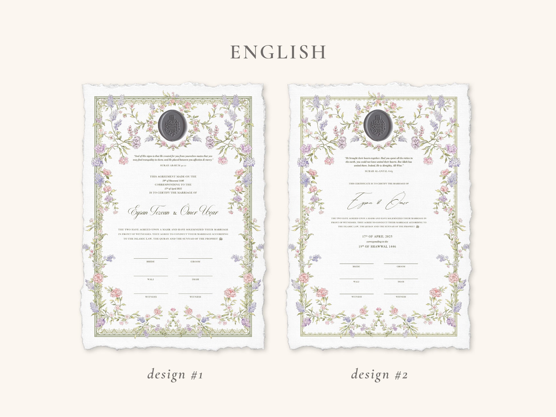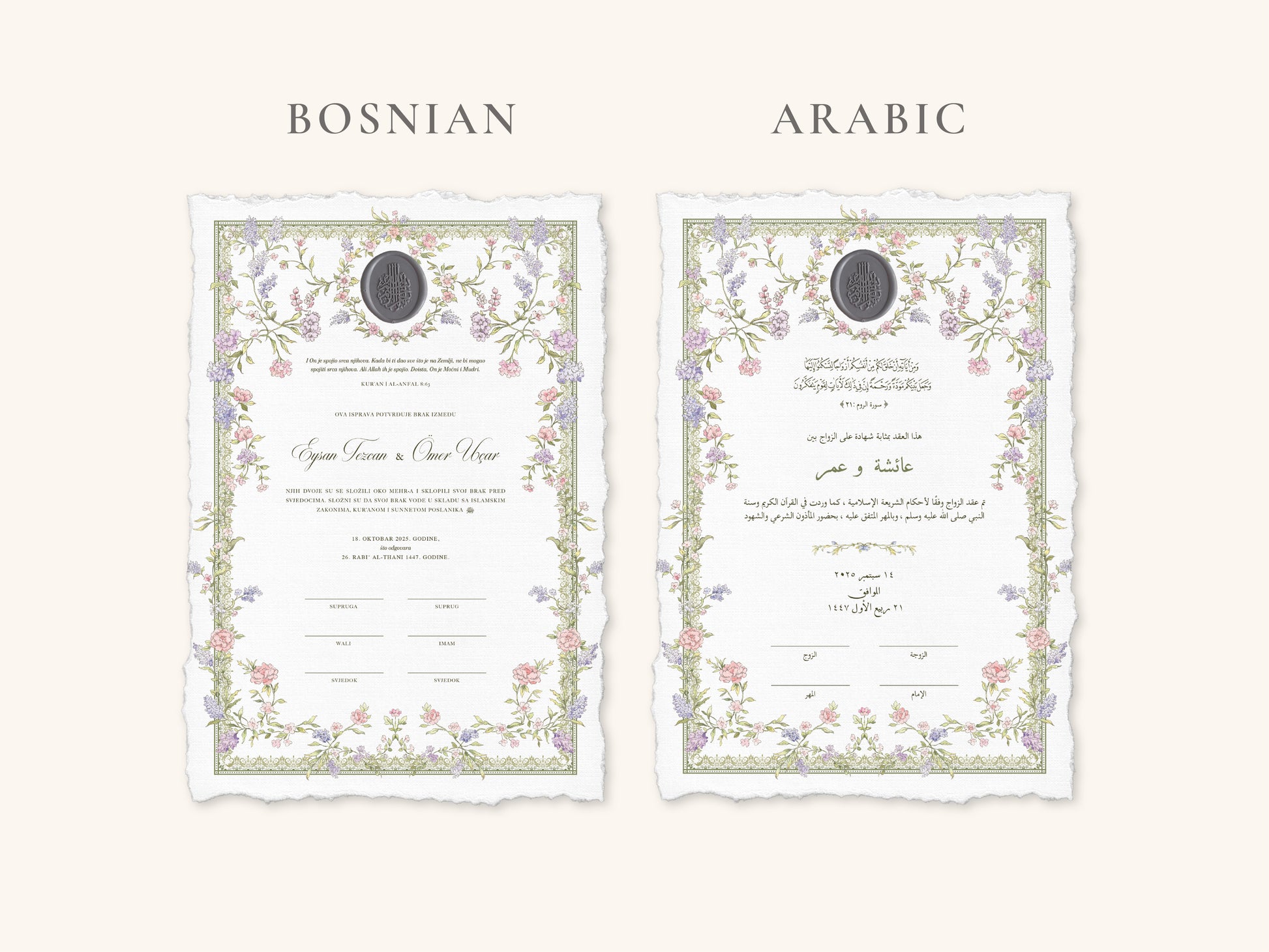 Wax Seal Dreamy Pastel Nikkah Certificate (A4 Size)
