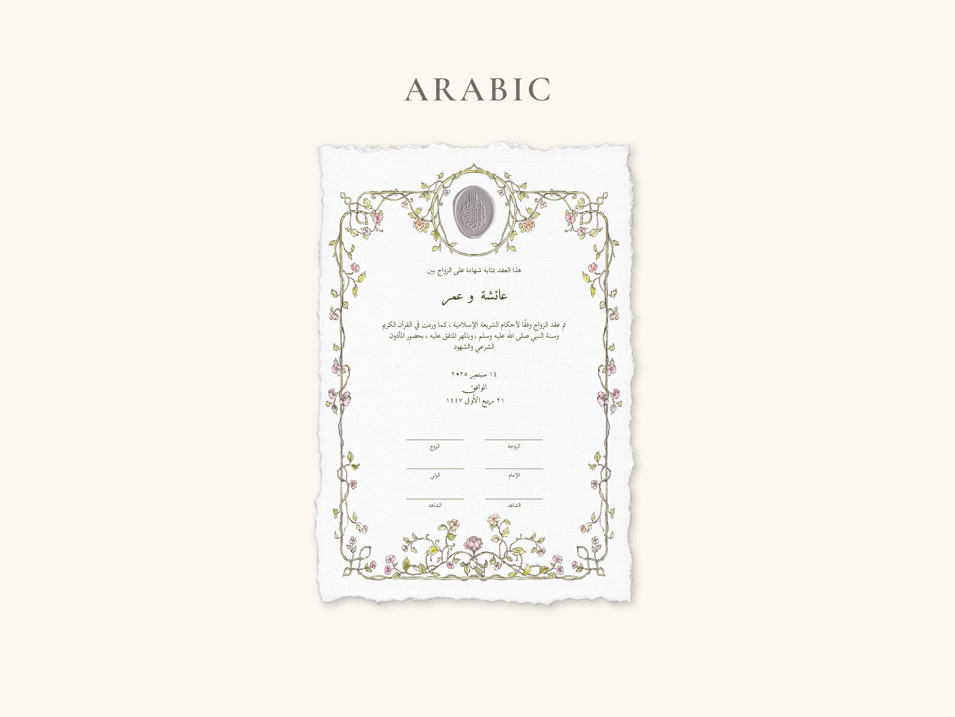 Wax Seal Floral Baroque Nikkah Certificate (A4 Size)